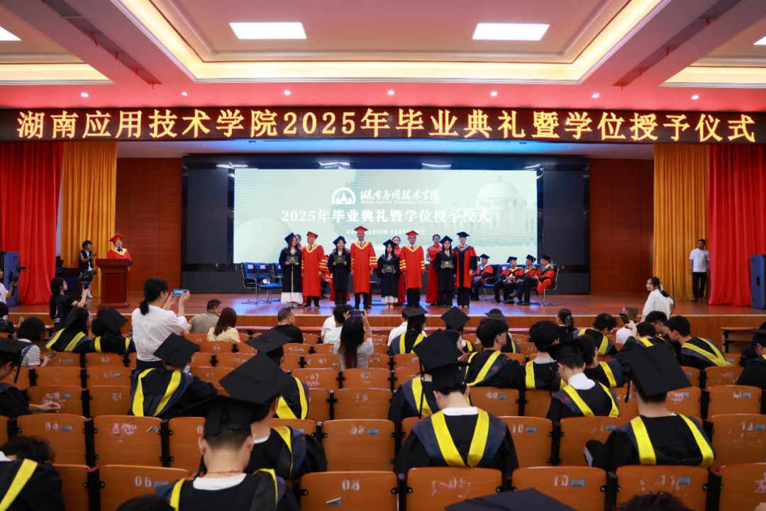 6月10日,湖南应用技术学院2025届毕业典礼暨学位授予仪式在43D二楼报告厅隆重举行,学校领导、全体教师与毕业生齐聚一堂,共同见证这一庄严而温暖的时刻。