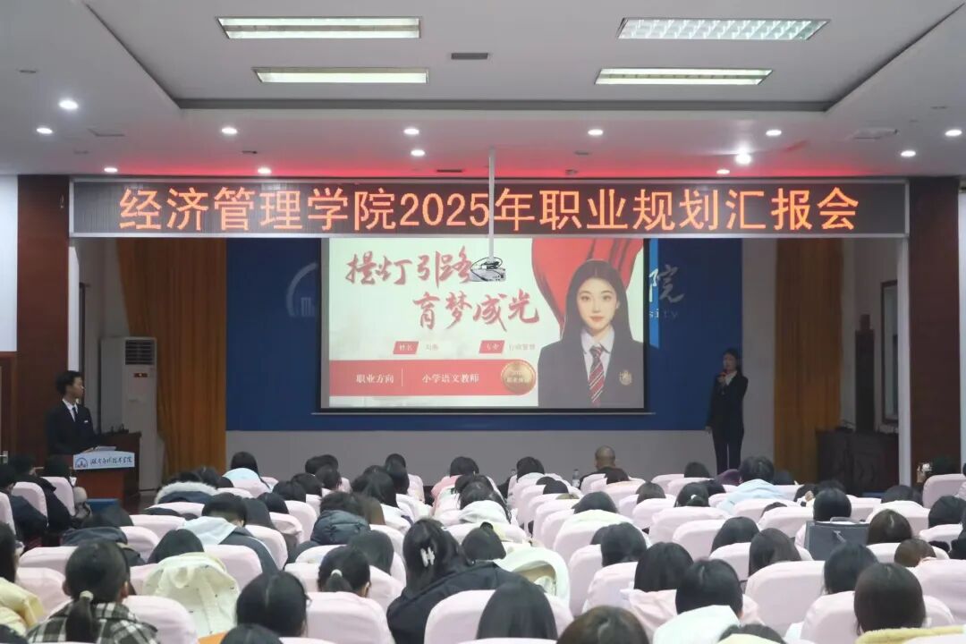 12月4日晚,经济管理学院2025年大学生职业生涯规划汇报会在东校区广言堂举行。学校创新创业学院院长文建奇、教务处副处长王卫霞,经济管理学院党总支副书记卢发松、副院长吴建功、院长助理符敏担任评委。辅导员代表与大一年级学生代表到场观摩,10位参赛选手同台竞技,带来了…