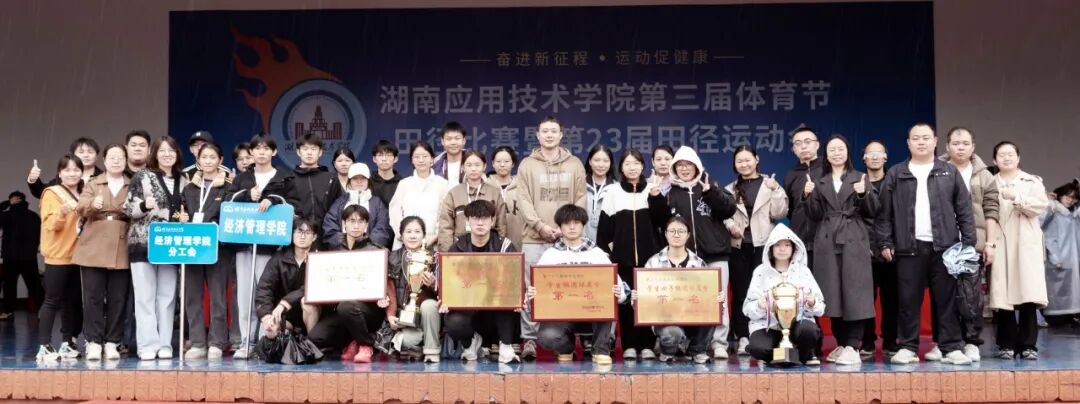 11月8日,湖南应用技术学院第三届体育节田径比赛暨第23届田径运动会圆满落幕,经济管理学院一举斩获学生男子组、女子组、学生组团体总分第一名,教工组团体总分第一名,以及第三届体育节总积分学生组、教工组两项一等奖。