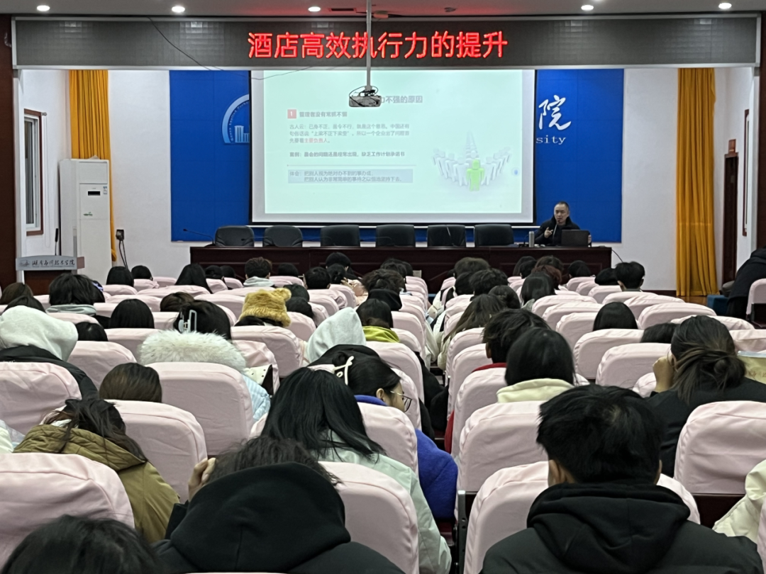 2024年12月11日,湖南师范大学旅游学院唐健雄教授在广言堂为经济管理学院酒管专业学生分享了关于“酒店高效执行力的提升”的讲座。