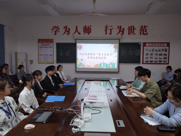 4月13日,经济管理学院于312会议室举行“奋斗青春号”演讲比赛选拔赛,经济管理学院党总支副书记高作梅、团总支书记沈娟、学院思政工作专项小组组长黄丹婷、20届通讯队负责人宁佐武、团总支实习副书记朱明担任评委。