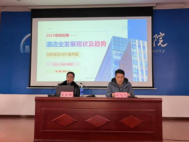 2025年12月25日,经济管理学院酒店管理专业的学生们迎来了一场干货满满的学术盛宴。袁金明副教授以《2025酒店业发展趋势——创新驱动与价值再造》为主题,为同学们带来了深入浅出的行业洞察。讲座现场座无虚席,同学们在袁教授的引领下,共同探讨了酒店业的最新动态和未来方…