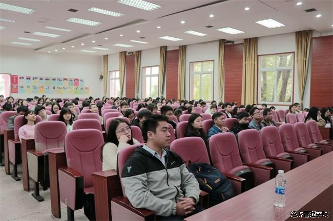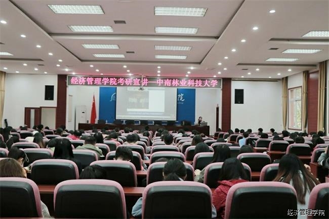 2018年10月17日下午两点,广言堂二楼座无虚席,特邀前来的中南林业科技大学符瑛教授和任腾教授,为考研学子作考研规划宣讲,15级16级行管、物流约二百多人学生参会。