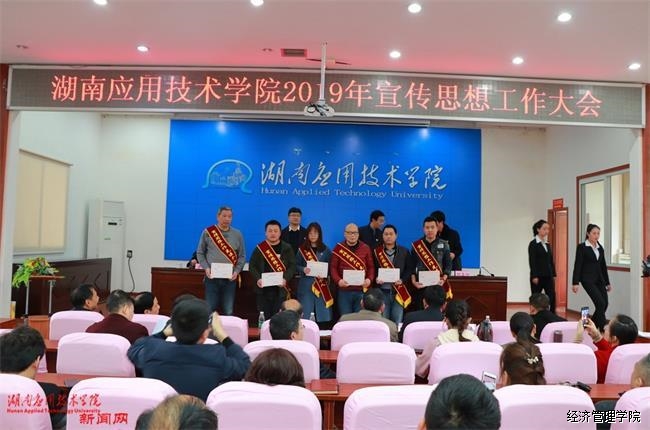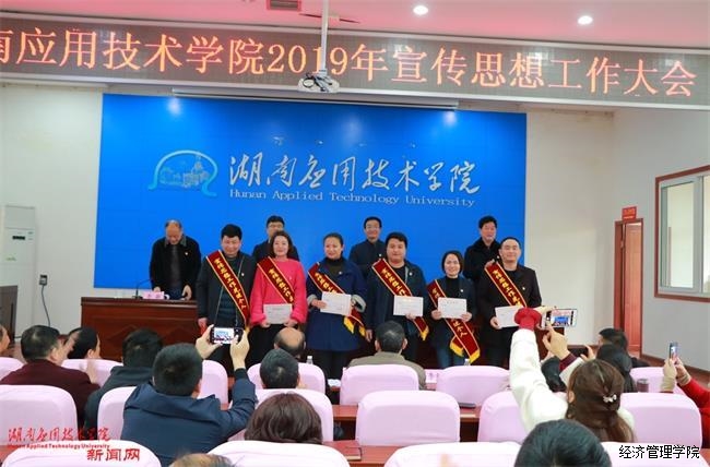 大会在雄壮的国歌声拉开帷幕,党委副书记、董事长李少夫宣读《中共湖南应用技术学院委员会关于表彰2018年度宣传思想工作先进个人的决定》。李红波、贺修裕、卢发松、向文、刘治国、单炯、陈磊、陶然、王佳、戴先凤、符敏、杨治华、李友谊共13人获2018年度宣传思想工作先进个人,主席台领导依次为上述优秀个人颁奖。