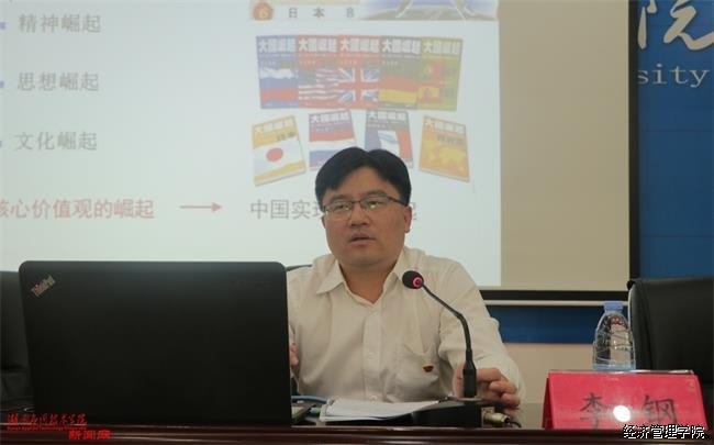 李钢从“积极培育和践行社会主义核心价值观的重要意义”、“全面准确把握社会主义核心价值观的科学内涵”和“入党积极分子率先垂范践行社会主义核心价值观”三个解读了社会主义核心价值观的科学内涵。