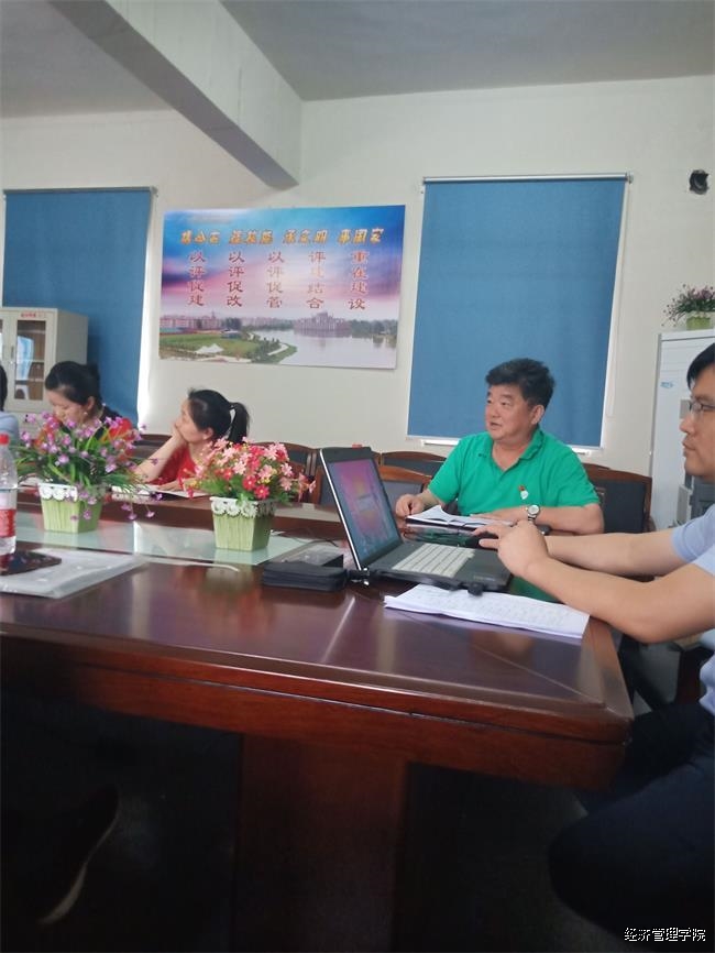 5月28日下午四点二十,经济管理学院党总支及直属第一党支部在东校区教学楼312室开展党员主题党日活动,听李钢书记上党课。全体教师党员参与,经管学院党总支书记胡承德同志主持。