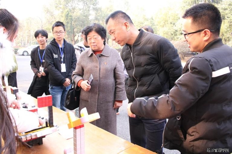 路演开始,招就处领导张光伏代表学校发言。鼓励经管学子们不断进取拼搏,大众创业,万众创新,推进我校创新创业活动。活动正式开始,大家兴致勃勃上前欣赏参赛选手优秀作品。这些模科作品都非常具有创新性,例如,由211工程队带来的作品“YID小绵”,其以平时工作学习中人们的空间拥挤为设计来源,以海绵宝宝可爱的外观为设计思路,在作品上,选手用它的鼻子做支撑来放置手机,在身体底部接入两个小型灯,插上电源便可起到照明作用,身体中空的设计让我们的设计在不采用翻盖的制作,以便在内部放置音响供平常娱乐,使其为人们提供了舒适整洁的环境;由水木年华带来的作品“致远橙”,其结合着传统文化与现代文化,具有成本低、制作过程简便,低碳环保,应用多样化,功能多样化的优点,象征着在黑暗中给人们带来光明;由星之梦想带来的作品“The dream of ferris wheel”,其作品整体模型由摩天轮联想而来将大赛初衷和摩天轮模型融合在一起,做成了可以多面旋转的的欧美简约风格摩天轮新型相框,并加之以灯饰和时钟创意元素,做成一个美观且实用的作品。除了这些作品之外,还有很多优秀作品层出不穷。