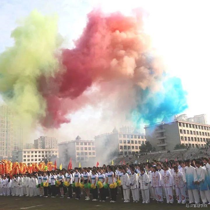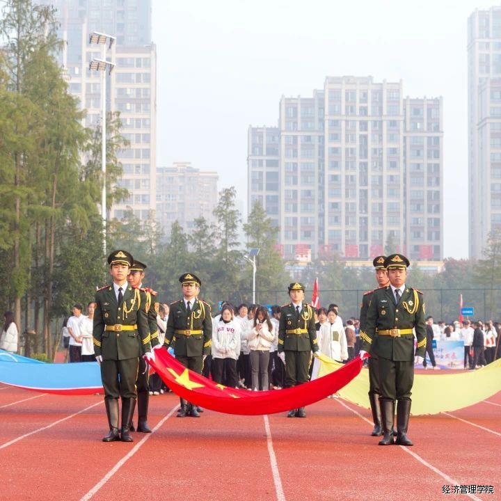 随着国歌的奏响,旗手们护送五星红旗,神采奕奕地走向主席台。田径场上的“蘑菇云”直冲云霄,令人震撼。