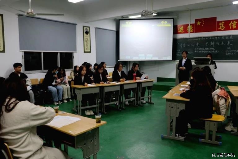 11月15日晚, 2023~2024学年“同德杯”校园辩论赛经济管理学院复赛最后一场于教学楼43栋422教室举行。出席本次比赛的评委为十六届辩论赛优秀辩手汤艳湘、刘珊珊、蒋杰。