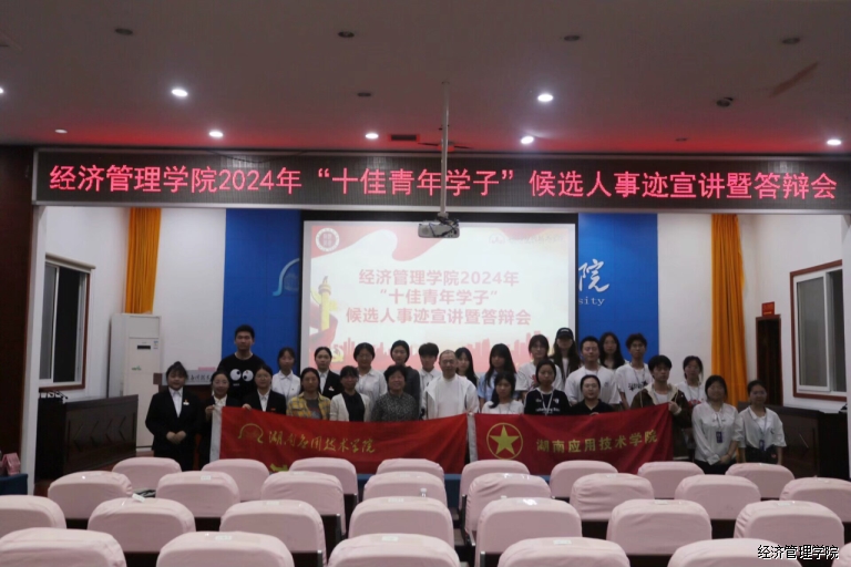 近日,经济管理学院在广言堂举行“十佳青年学子”事迹宣讲暨答辩会,党总支副书记高作梅、副院长李菽林、团总支书记沈娟、学工干事陈秀宇、思政工作小组负责人黄丹婷、“十佳青年学子”候选人,以及各团学组织干部代表、各班级代表参加会议。