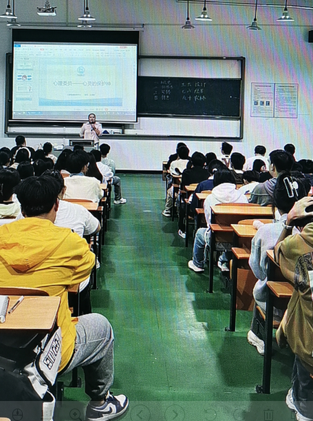 在讲座中,王紫栋老师围绕心理委员的角色定位、职责使命以及如何在校园中发挥积极作用等核心议题,进行了深入浅出的讲解。他深情地阐述了心理委员作为同学们心灵守护者的神圣职责,并勉励大家要不断学习心理健康知识,提升自我素养,以便为身边的同学提供及时、有效的心理支持和帮助。