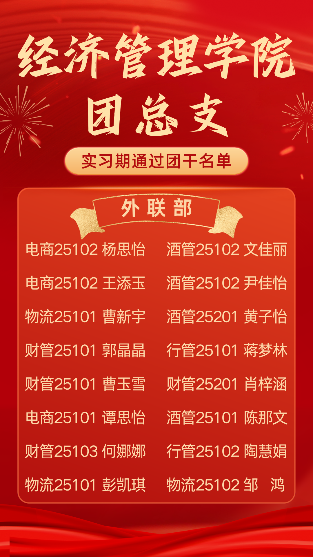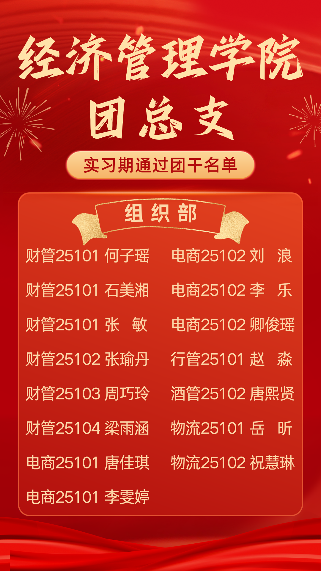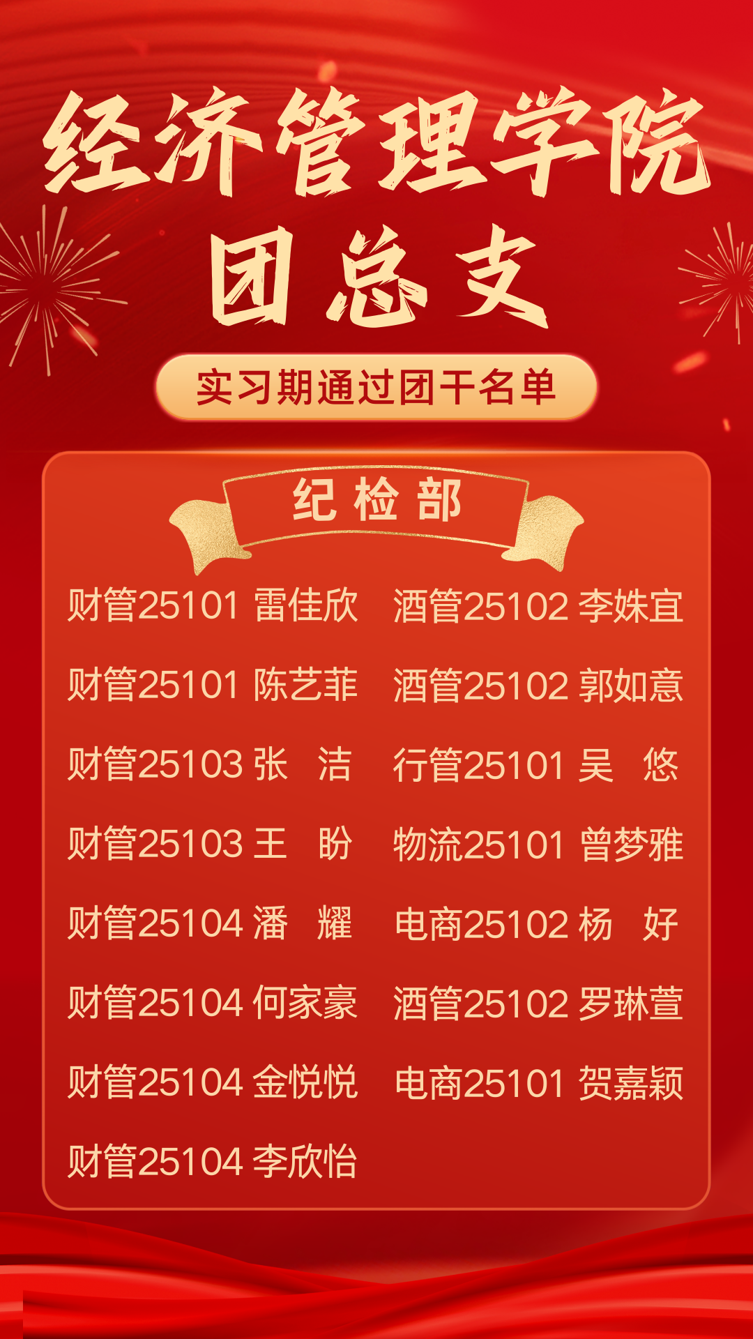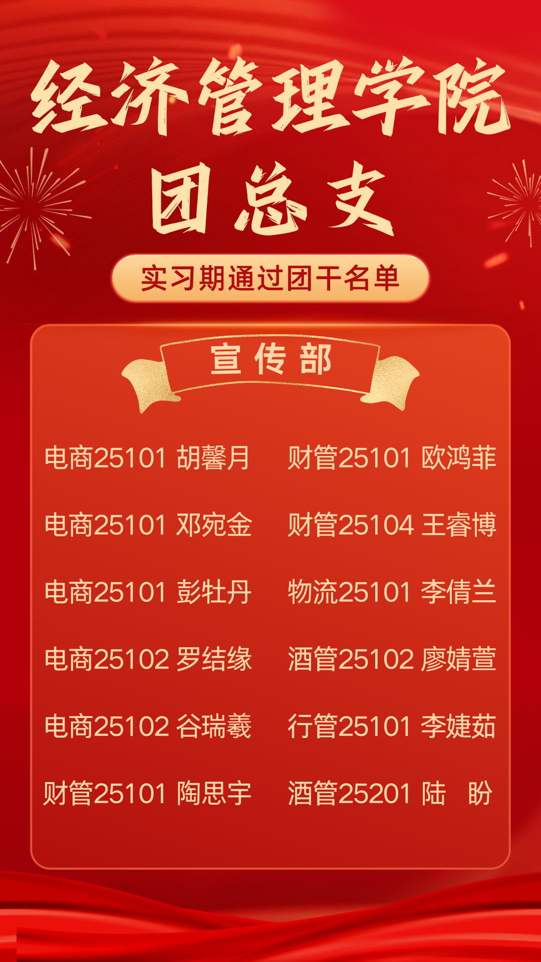 青春淬炼显担当,笃行奋进启新程 ——经济管理学院团总支实习期通过团干名单公示