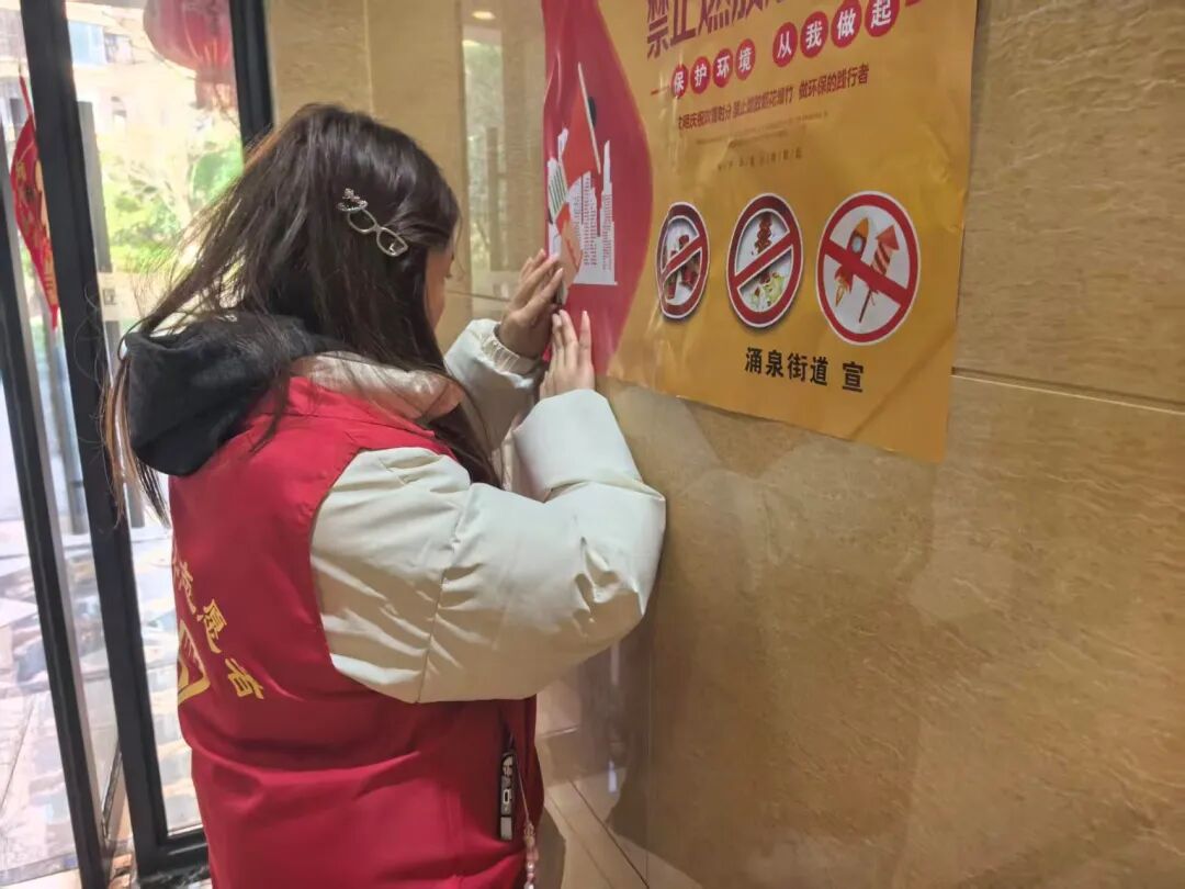 春节前夕,我作为北湖青年志愿者,参与了社区禁燃禁放宣传活动。活动中,我在小区单元楼、电梯间张贴“保护环境,从我做起”的宣传海报,清晰标注禁止燃放烟花爆竹的标识;上门向居民发放粉色告知单,耐心讲解燃放烟花爆竹对空气质量、消防安全的危害,以及本地禁燃规定,引导大家选择环保方式庆祝佳节。