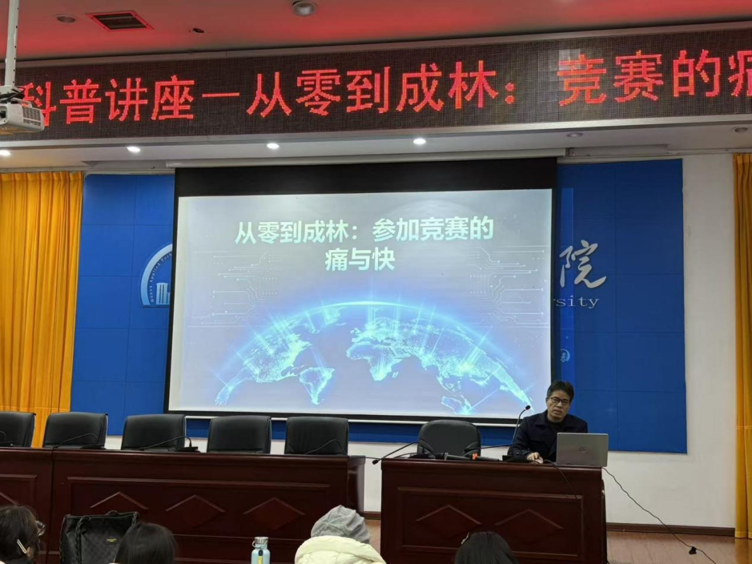 为激发学生创新精神,营造浓厚学术竞赛氛围,2024年12月23日晚,经济管理学院于广言堂二楼成功举办学科竞赛专题科普讲座。讲座特邀中南林业科技大学副教授、复旦大学博士、南京大学博士后罗建兵担任主讲。行政管理专业负责人邓太平老师主持,教研室全体教师及该专业2023-202…